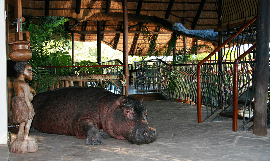 Basil was quite the iconic sight at the Mukambi reception and bar area. Sadly, it has been a few years since his passing in 2016, and to this day we still have guests asking us if the hippo is still about. We miss him dearly, as he used to parade through the lodge and take relaxing naps in the bar, living room, and lower deck areas. We suspect he was fiercely defending his territory against other male hippos in the area, and was bested one day.